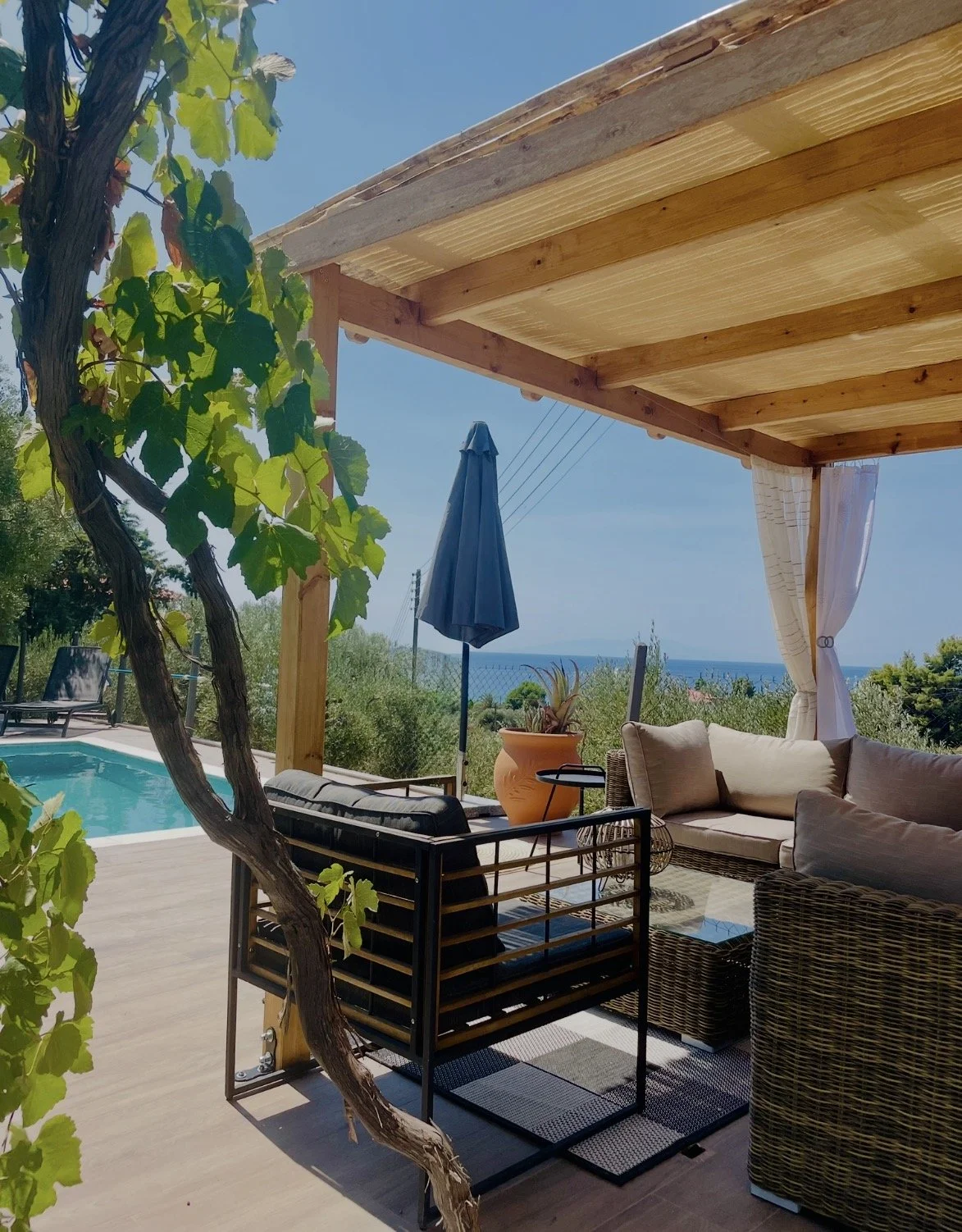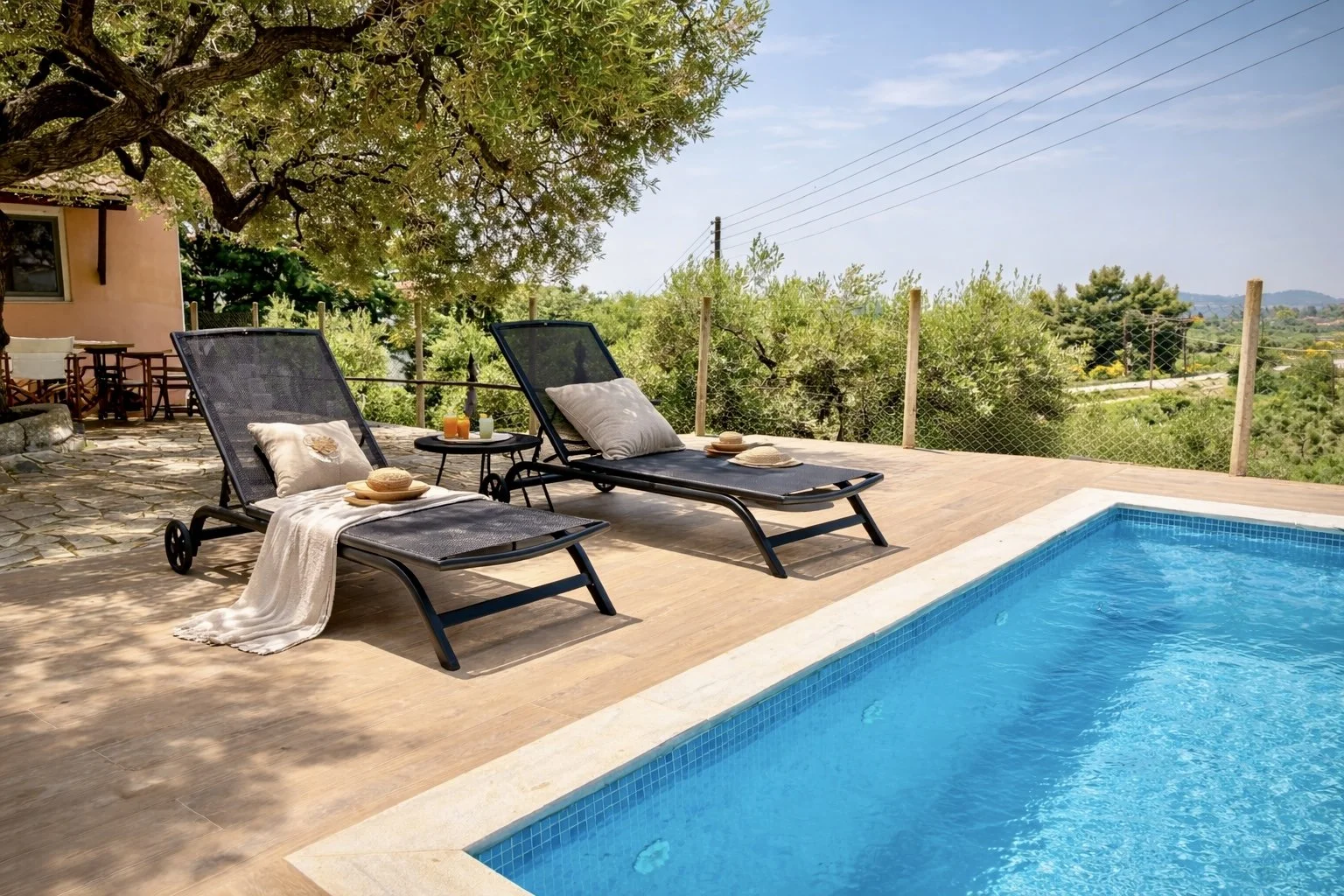 Op het zonnige schiereiland Kassandra, bij het gezellige vissersdorp Nea Skioni, ligt ons huis midden tussen de eeuwenoude olijfbomen met uitzicht over de zee van Halkidiki.
